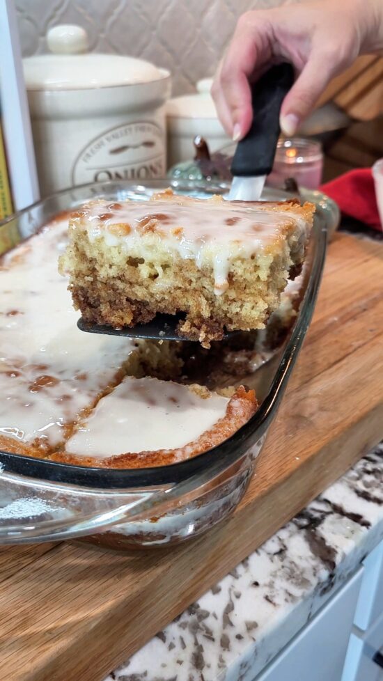 To make this delicious cinnamon roll cake, begin by preheating your oven to 350°F and greasing a 9×13-inch baking pan with non-stick cooking spray. In a large bowl, mix together all the dry ingredients for the cake, such as flour, sugar, baking powder, and salt. Once