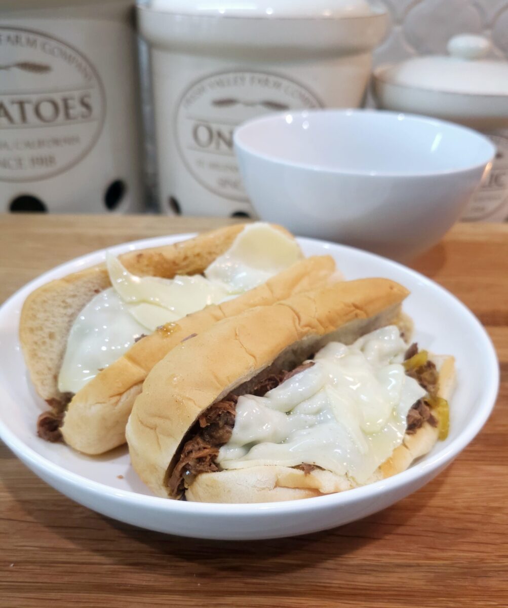 - Serve hot beef on hoagie rolls, topped with provolone cheese and mayo if desired.