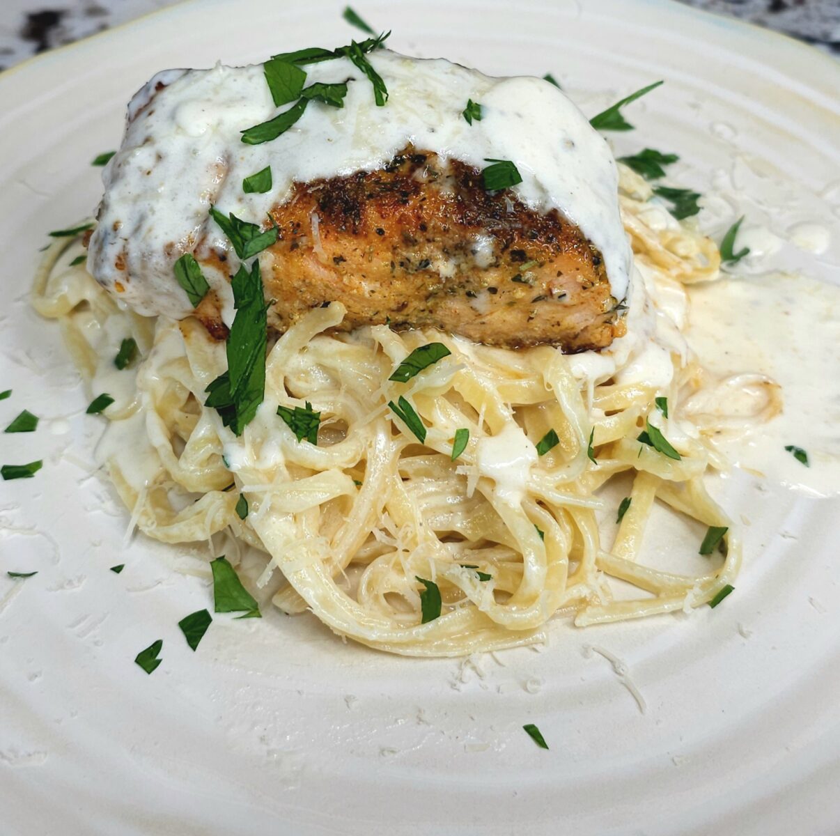 Creamy alfredo lemon sauce combined with perfectly cooked salmon!