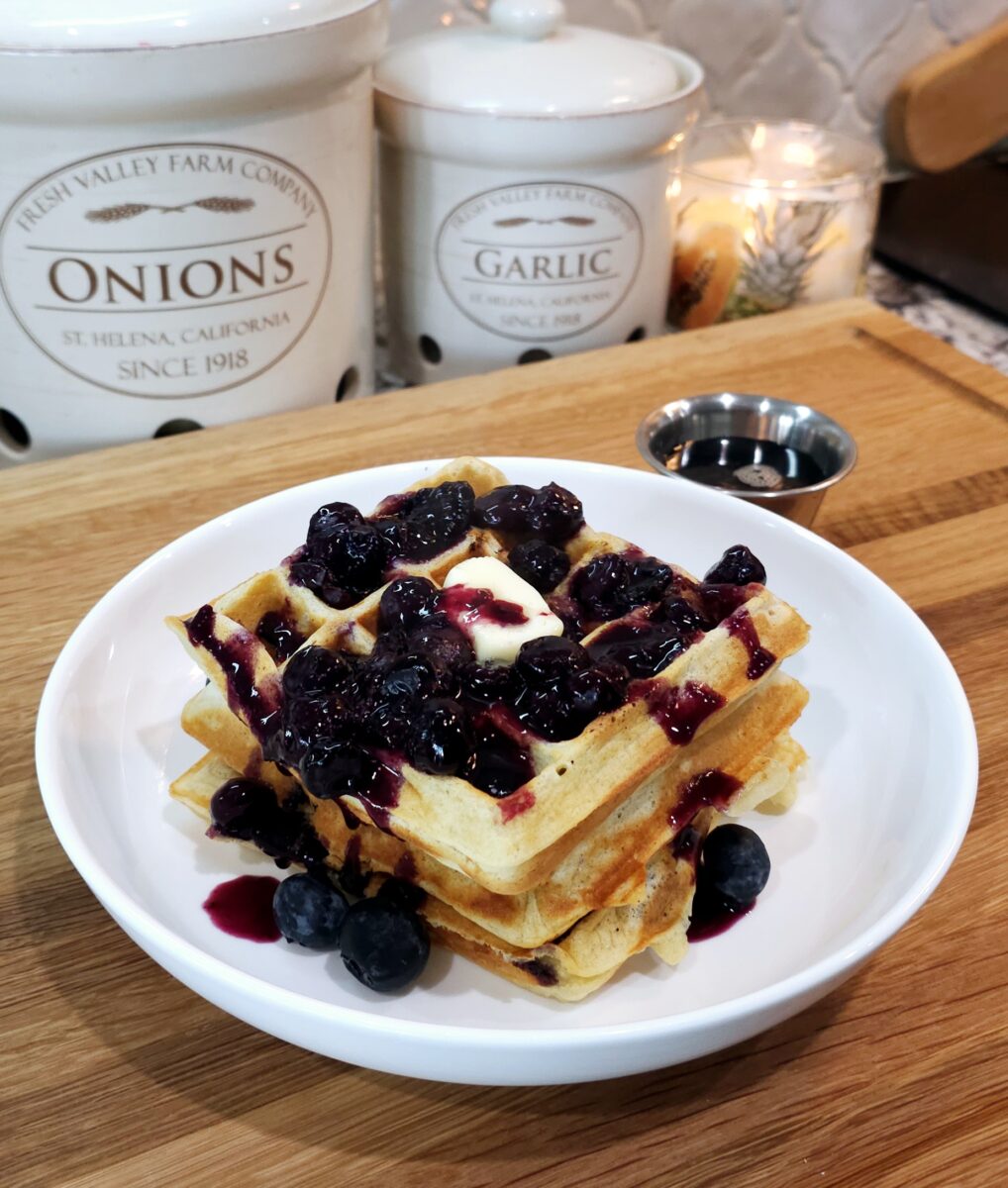 Scrumptious Blueberry Waffles with a Blueberry Sauce