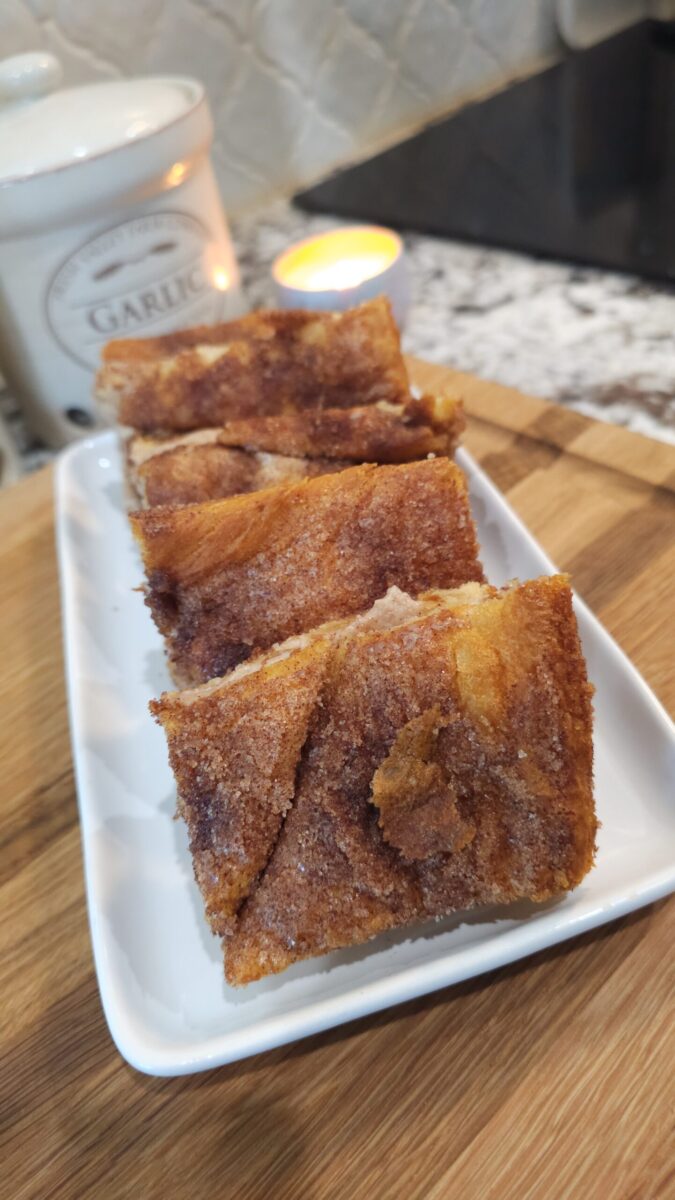 Cinnamon Sugar Cheesecake filling, butter crust, and a cinnamon sugar butter topping. All you ever need in a sopapilla!