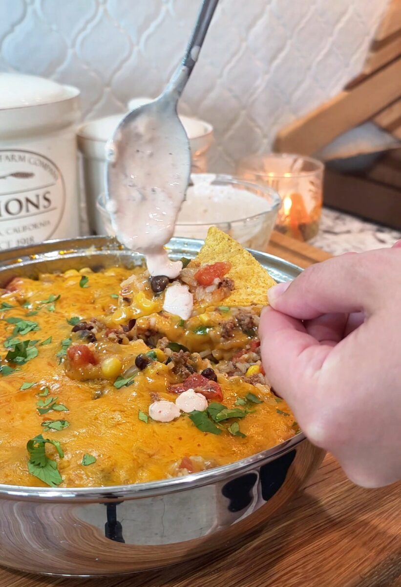 Introducing our mouthwatering Taco Skillet, a delightful fusion of savory flavors that will tantalize your taste buds with every bite. In this recipe, hearty ground beef, vibrant vegetables, and zesty seasonings come together in a sizzling skillet creation that’s both quick and easy to prepare. But what truly elevates this dish to culinary excellence is our irresistible Salsa Ranch Sour Cream—a creamy and tangy accompaniment that adds a refreshing twist to every spoonful. Get ready to embark on a flavor-packed journey that’s perfect for any occasion, whether it’s a cozy weeknight dinner or a festive gathering with friends and family.