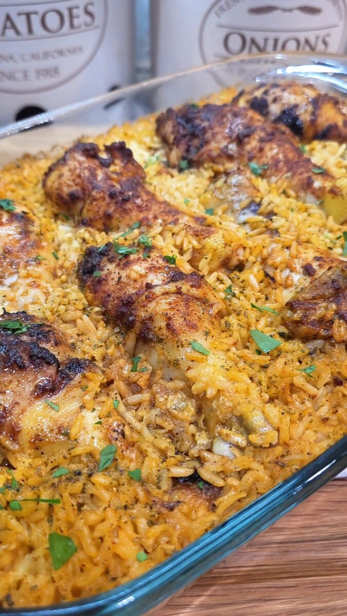 Weeknight Chicken and Rice is a straightforward recipe that involves seasoning chicken legs or thighs with a mix of olive oil and various spices, including paprika, oregano, onion powder, and garlic powder. The seasoned chicken is then placed on top of seasoned rice in a baking dish, along with sliced butter. The dish is baked in the oven, first covered with foil and then uncovered, until the chicken is fully cooked and reaches the desired temperature. This one-pot meal combines the flavors of well-seasoned chicken with seasoned rice, creating a simple and delicious dish.
